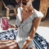 Step into summer with confidence and style in the Keera Retro Striped Swimsuit, where vintage charm meets modern comfort.